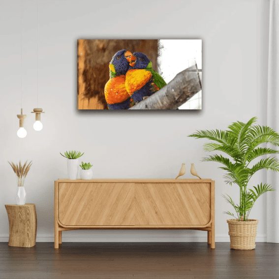 Renkli Papağan Cam Tablo